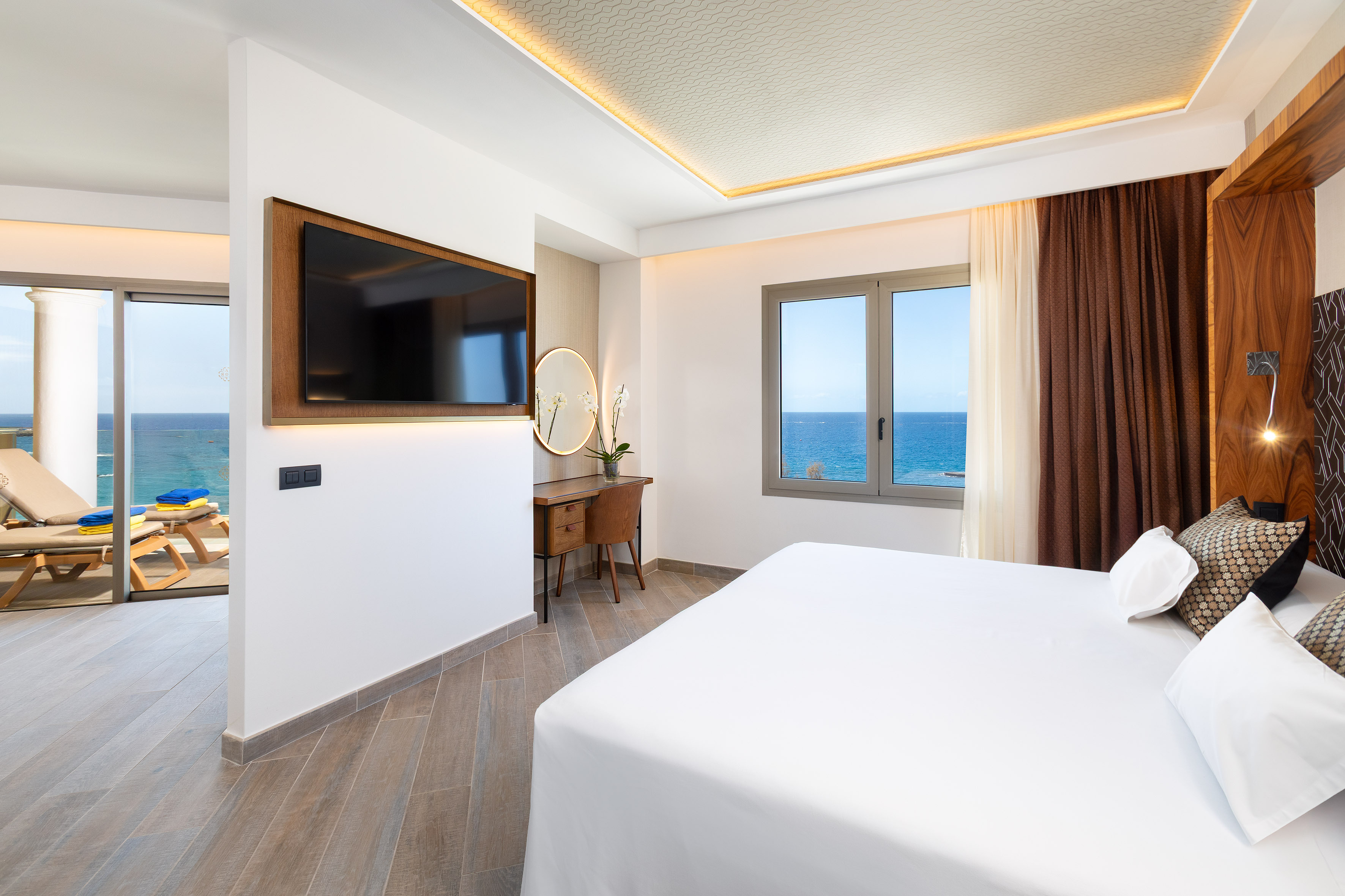 Habitaciones con vistas al océano, con capacidad para 3 personas, que pueden disponer de dormitorio y salón independiente o de un diseño de concepto abierto que integra ambas áreas. Están equipadas con dos camas gemelas o una cama doble, más una cama individual abatible para el tercer huésped en el salón. Disponen de baño con ducha independiente y bañera de hidromasaje. Algunas son del tipo dúplex. Todas cuentan con balcón o terraza con mobiliario de exterior, incluyendo tumbonas y sombrilla. Check-In: 15:00 Check-Out: 12:00